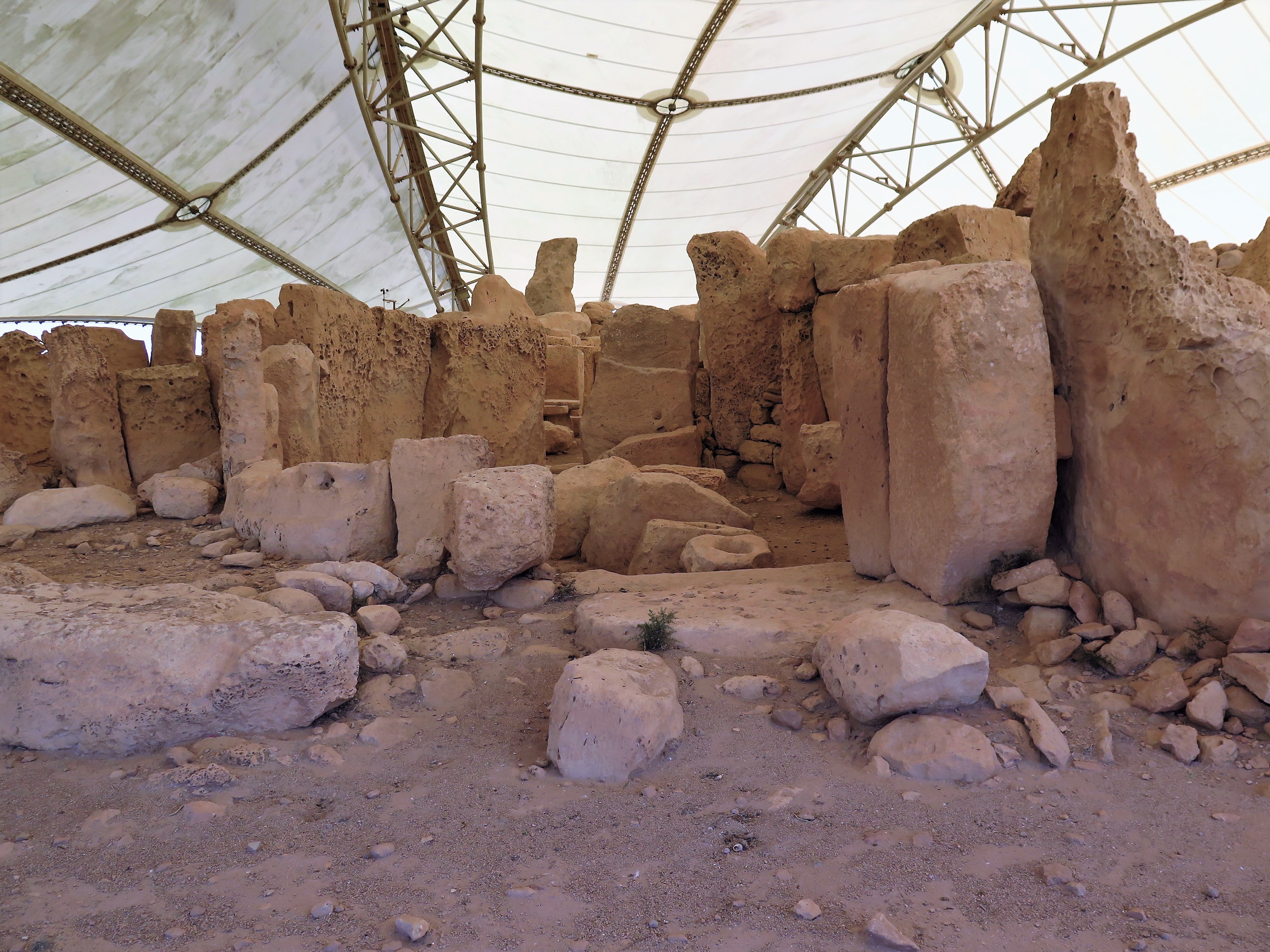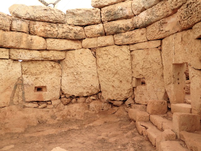 Tedy takhle, před dvaceti lety byl na oba chrámy úchvatný výhled. Člověk se k nim dokodrcal přes půl ostrova pomalým zpoceným autobusíkem, téměř přidušen nedostatkem kyslíku a zasednut babkou v černém, aby se následně plahočil po rozbité polní cestičce bez jakéhokoliv označení někam k moři, když tu náhle oba chrámy povstaly na obzoru, jako dva zářivé drahokamy svítící do dálky. Jelikož byly megalitické stavby zcela nehlídané a ponechané svému osudu, někdy před asi 15 lety jsem se doslechla, že sprejeři poničili jeden z chrámů, a dokonce povalili některé z kamenů.