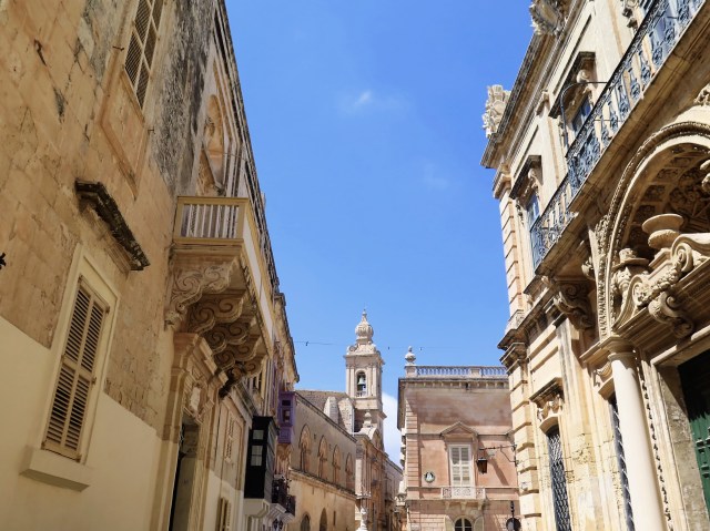 Přejeli jsme pak směrem do centra ostrova, do opevněného historického města Mdina, přezdívaného Tiché město. Asi proto, že jeho hradbami obehnané centrum je autům nepřístupné. Nebo proto, že v něm nežijí místní. Je to skanzen pro turisty, nikoho jiného tam nepotkáte. Před dvaceti lety jsem tam neviděla ani ty turisty, dnes se na nejvyšším bodě celého ostrova v městě zničeném zemětřesením a následně vystavěném znovu v barokním slohu rozkládá jedna kavárna a muzeum vedle druhé a třetího.